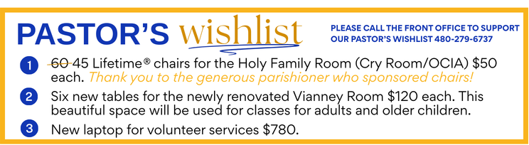 - KofC Vitalant Blood Drive From 8:00am - 1:15pm in the Church Parking Lot