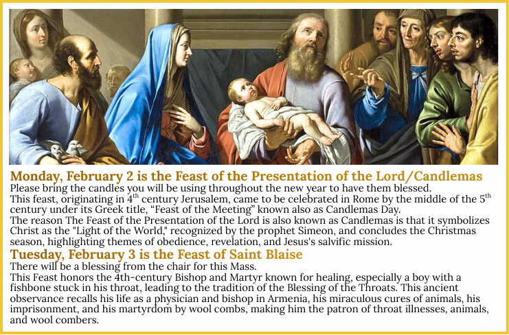 - Daily Mass 8:00am - 8:45am
