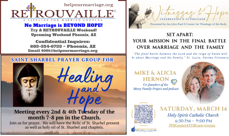 Mass for the Sick and Homebound:Watch the 9 a.m. Sunday mass from Saints Simon and Jude Cathedral on KAZT-TV (AZ-TV7, Cable 13).